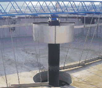 刮泥機(jī),是一種排泥設(shè)備。組成部分:刮泥機(jī)由桁車、刮泥耙、撇渣板、驅(qū)動裝置和自控柜等到組成。分類:刮泥機(jī)主要有中心傳動刮泥機(jī)、周邊傳動刮泥機(jī)。中心傳動刮泥機(jī)主要由工作橋、傳動裝置、穩(wěn)流筒、傳動軸、刮臂、刮泥板等組成。該機(jī)設(shè)有橫跨池子的固定平臺,工作時(shí)其整機(jī)載荷都作用在工作橋中心;污水經(jīng)池中心穩(wěn)流筒均流到四周。隨著過流面積增大而流速降低,污水中的沉淀物沉淀于池底,刮泥機(jī)將沉淀的污泥刮集到中心集泥坑中,利用水壓將其從污泥管中排出。該機(jī)結(jié)構(gòu)簡單,傳動平穩(wěn),動力消耗低,刮泥效果好,是一種理想的排泥設(shè)備;周邊傳動刮泥機(jī)用于城市污水處理廠、自來水廠以及工業(yè)廢水處理中輻流式圓形沉淀池和濃縮池中,排除沉降在池底的污泥和撇除池面的浮渣。應(yīng)用領(lǐng)域:刮泥機(jī)主要應(yīng)用于鋼鐵、冶金、礦山、水處理等行業(yè)。